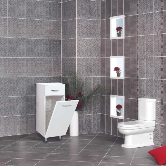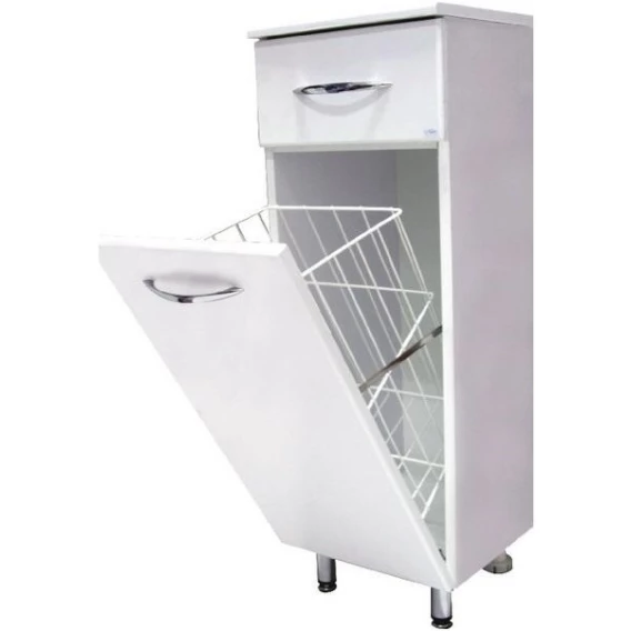 Напольный полупенал для ванной комнаты с корзиной для белья Onika КАПРИЗ 30, благодаря простому минималистичному дизайну и белой глянцевой поверхности, подойдет под любой интерьер ванной комнаты. Оптимальная высота пенала позволяет использовать его поверхность как дополнительную столешницу, небольшой удобный ящик с направляющими полного выдвижения подойдет для хранения мелких аксессуаров, а за дверцей скрывается отделение с корзиной для белья. Размер бельевой корзины: 240*230*435. Корпус пенала выполнен из ЛДСП, фасад - из МДФ в пленке, устойчивых к механическим воздействиям, перепадам температур и высокой влажности. 2 декоративных и 2 пластиковых ножки с регулировкой по высоте, а так же 2 хромированных ручки идут в комплекте с пеналом.