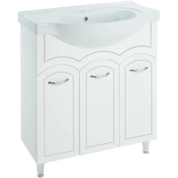 Тумба с раковиной белый глянец серебряная патина 70 см Bellezza Амелия 4630311000398 + 4690311008978