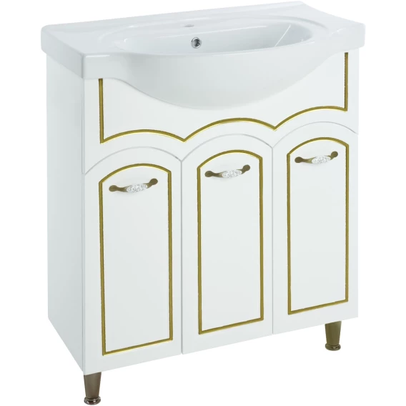 Тумба с раковиной белый глянец золотая патина 79,5 см Bellezza Амелия 4630313000389 + 4690311008985