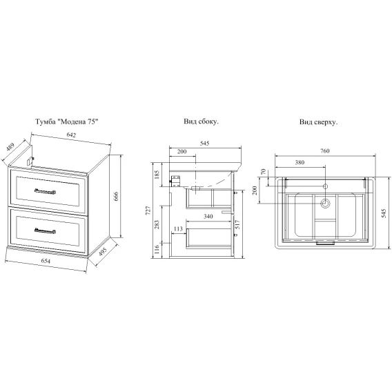 Комплект мебели белый матовый 76 см Sanflor Модена C04616 + 4630055550418 + C04612