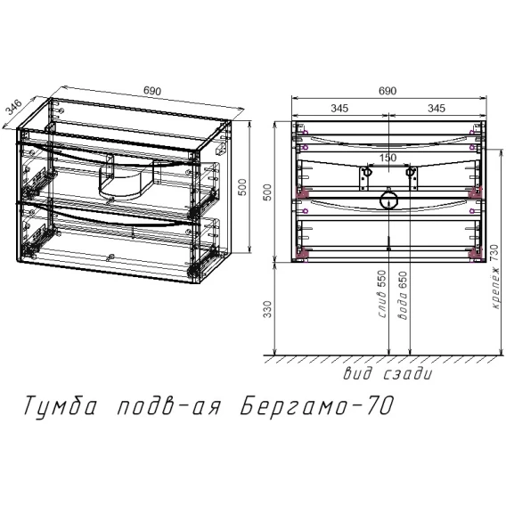 Тумба белый матовый 69 см Style Line Бергамо СС-00002320
