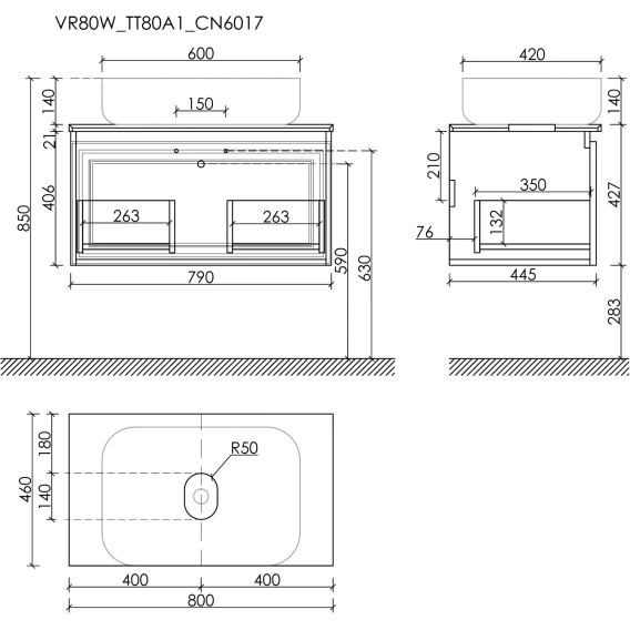 Комплект мебели белый матовый 81 см Sancos Very VR80W + CN7012 + SF800
