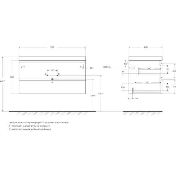 Тумба Beton 99,6 см Cezares Molveno MOLVENO-100-2C-SO-BET