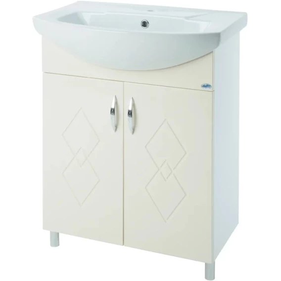 Тумба с раковиной бежевый глянец/белый глянец 60 см Bellezza Элеганс 4638609240075 + 4620008196114