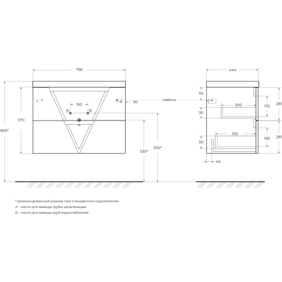 Пенал Aqwella Urban URB0535W подвесной L/R, белый