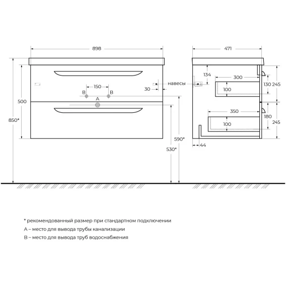Тумба Bianco Lucido 89,8 см Cezares Eco ECO-900-2C-SO-BL