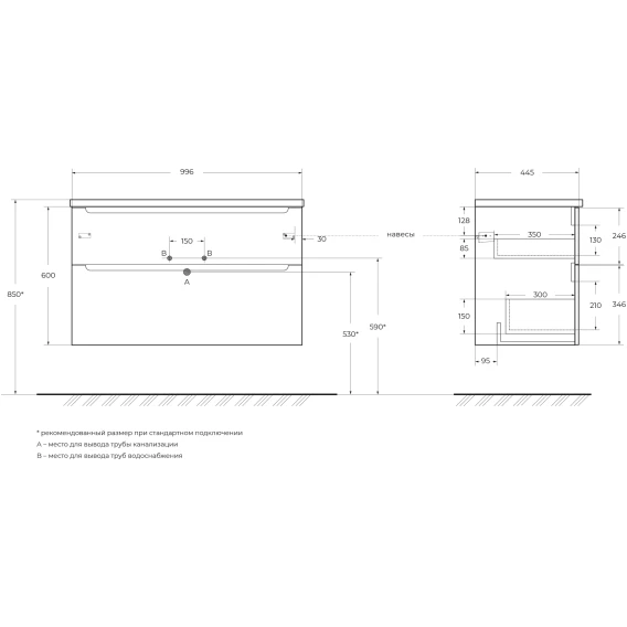 Тумба Bianco Lucido 99,6 см BelBagno Etna ETNA-H60-1000-2C-SO-BL-P