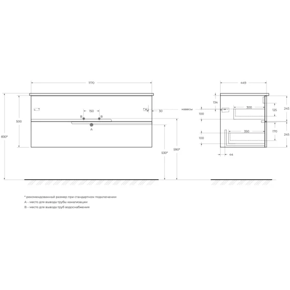 Тумба Bianco Lucido 119,7 см Cezares Duet DUET-1200-2C-SO-BL