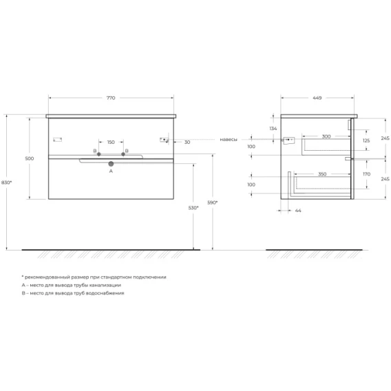 Тумба Bianco Opaco 77 см Cezares Duet DUET-800-2C-SO-BO