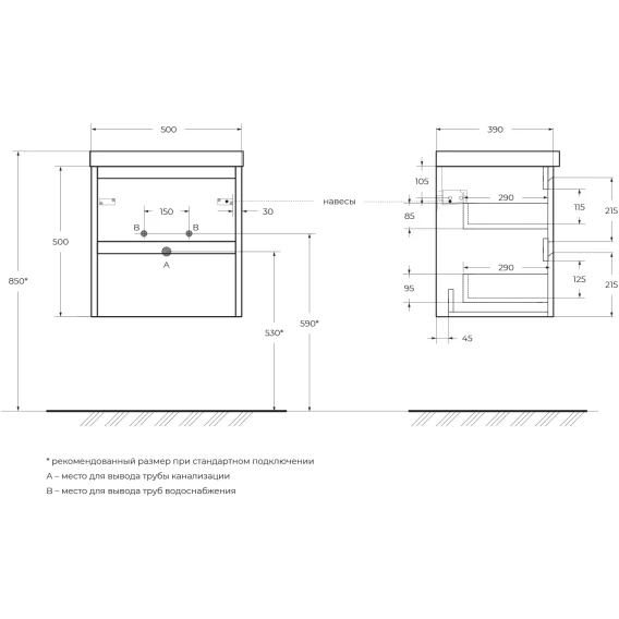 Тумба Cemento Grigio 50 см BelBagno Kraft KRAFT 39-500/390-2C-SO-CG