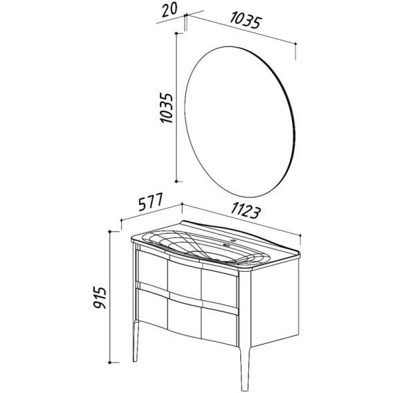 Тумба черный матовый 109,4 см Belux Анжело Н 110-02 4810924275950