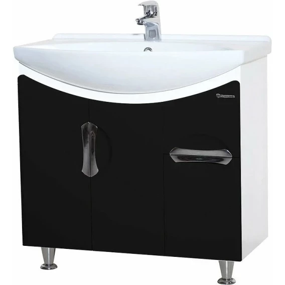 Тумба с раковиной черный глянец/белый глянец 76 см Bellezza Лагуна 4632112110047 + 4620008197470