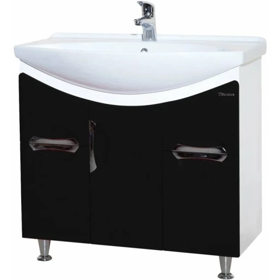 Тумба с раковиной черный глянец/белый глянец 86,5 см Bellezza Лагуна 4632114110045 + 4620008197357