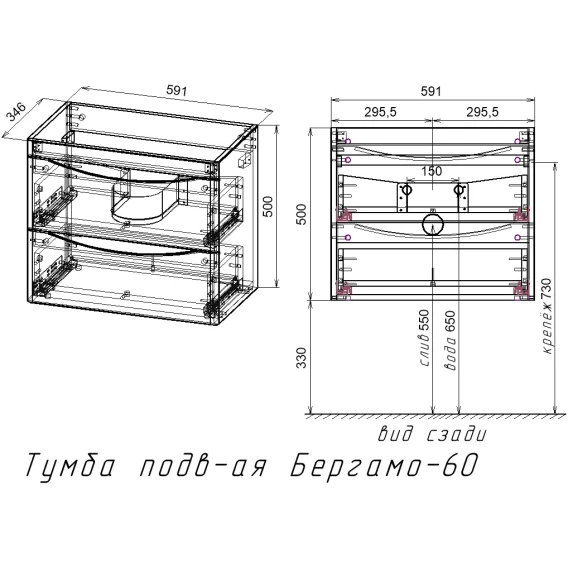 Тумба черный матовый 59,1 см Style Line Бергамо СС-00002318