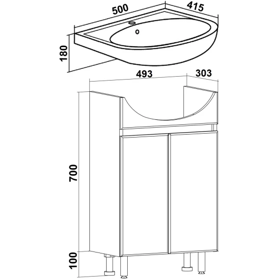 Тумба дуб/графит 49,3 см Runo Лада 00-00001164