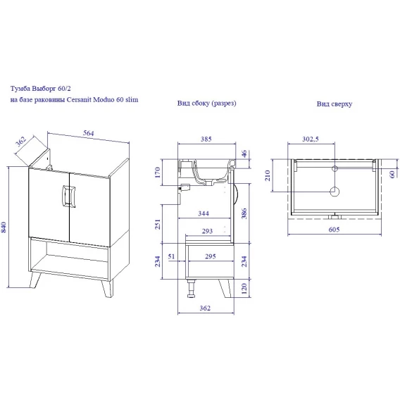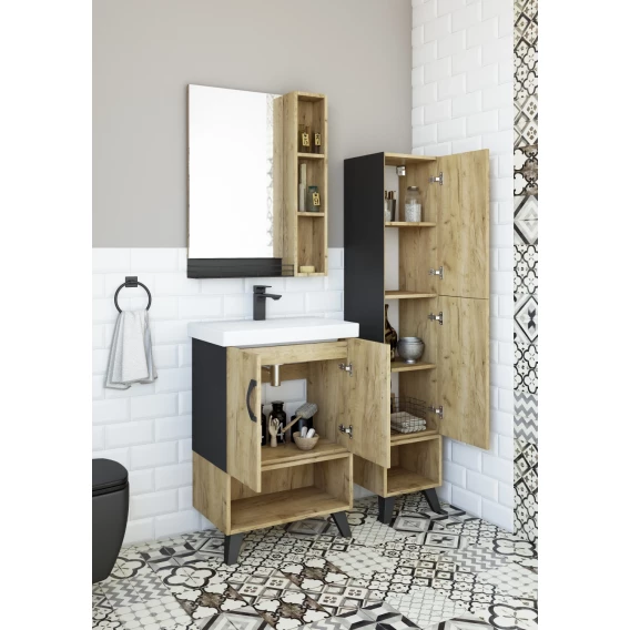 Комплект мебели дуб крафт золотой/черный матовый 60,5 см Sanflor Выборг C16293 + UM-MOD60SL/1 + C16295