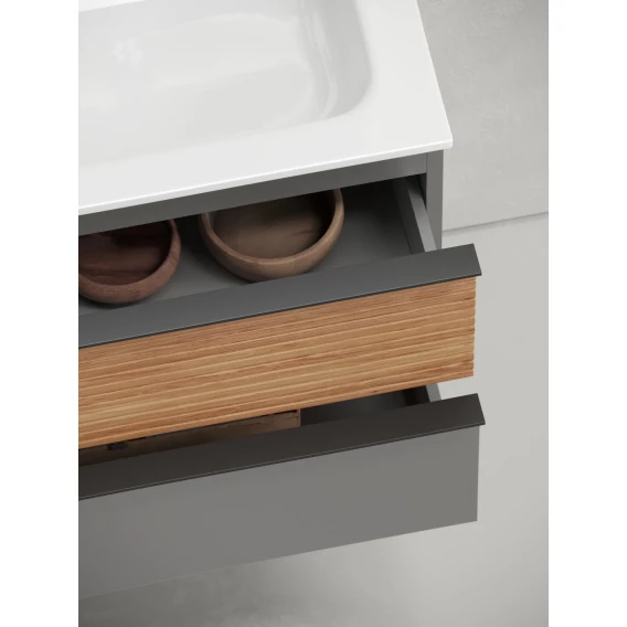 Тумба с раковиной Sancos Delta DL100LGR + CN7014 101 см L, подвесная, дуб красный/графит матовый