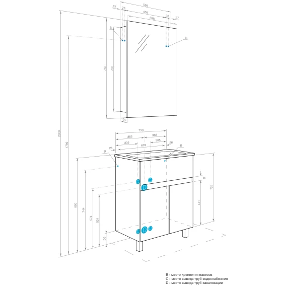 Механизм доводчика, Ящик, Полочка, Система "Push-to-open", Ножки