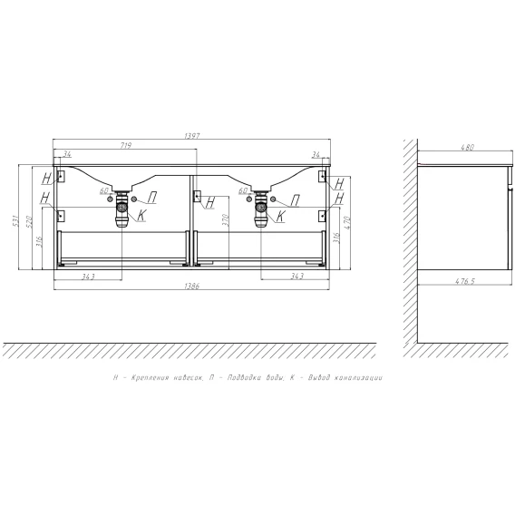 Тумба дуб сонома 138,6 см Velvex Pulsus tp.PUL.PUL.140.2Y дуб сонома