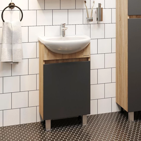 Тумба с раковиной дуб сонома/серый матовый 46 см Onika Милтон 104512 + 4620008192741