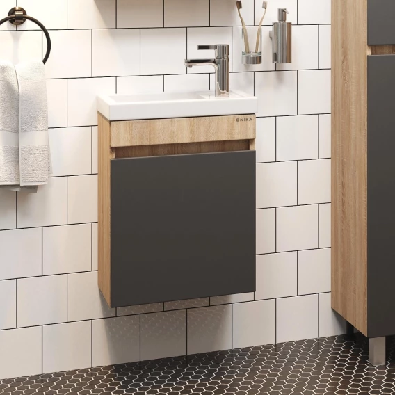 Тумба с раковиной дуб сонома/серый матовый 45,5 см Onika Милтон 104511 + 4640021065907