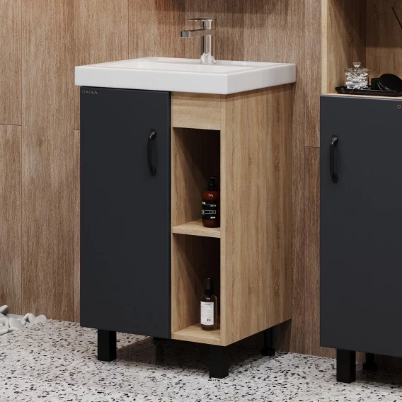 Тумба с раковиной дуб сонома/серый матовый 50 см Onika Милтон 105035 + 4630055557578