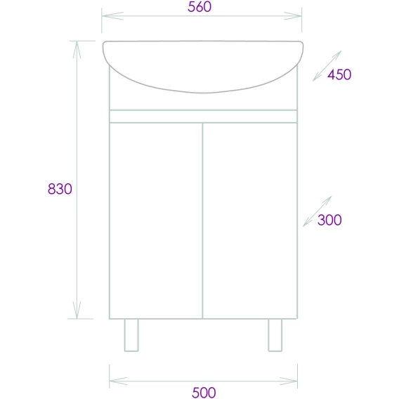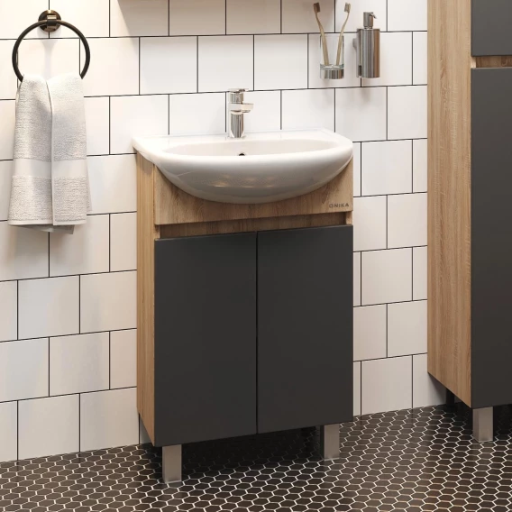 Тумба с раковиной дуб сонома/серый матовый 55,5 см Onika Милтон 105560 + 4620008192765