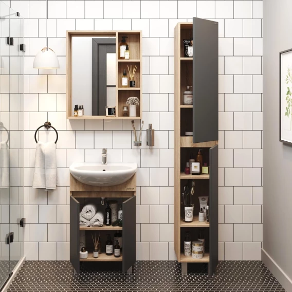 Комплект мебели дуб сонома/серый матовый 55,5 см Onika Милтон 105560 + 4620008192765 + 206070