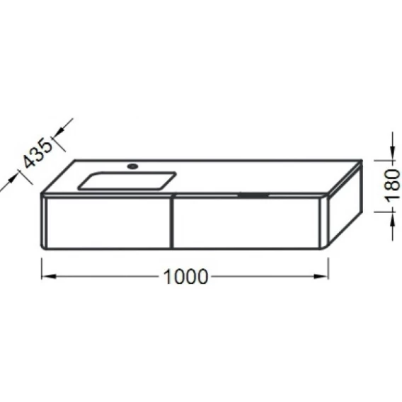 Тумба с отверстием под смеситель, стеклянной столешницей, плавно закрывающимся выдвижным ящиком и большим пространством для размещения предметов. Подходит для раковин Reve Е4819.