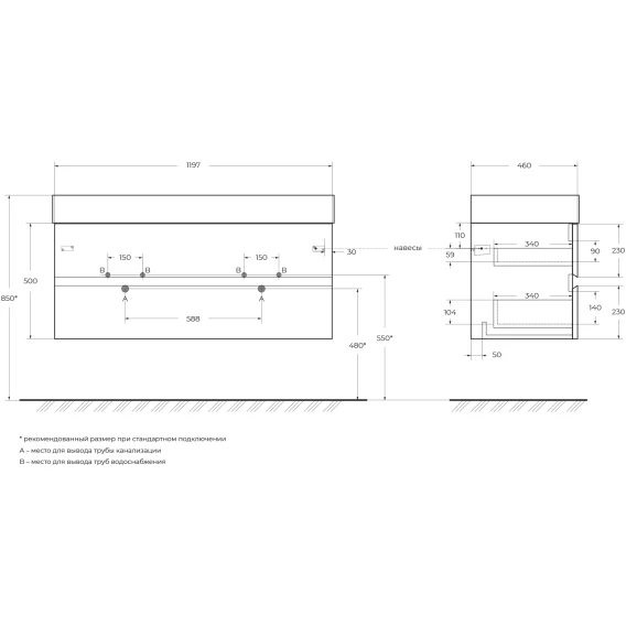 Тумба Noce Chiaro 119,7 см Cezares Molveno MOLVENO 46-120-2C-SO-2-NC