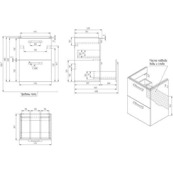 Тумба белый глянец 47,6 см Cersanit Melar 64127