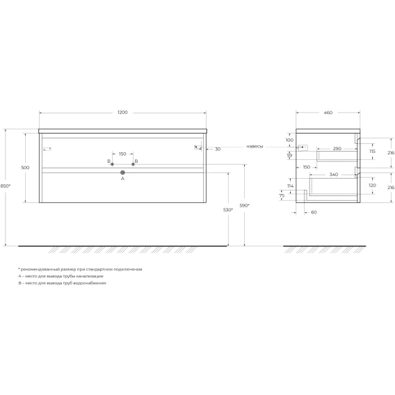 Глубина 46 см