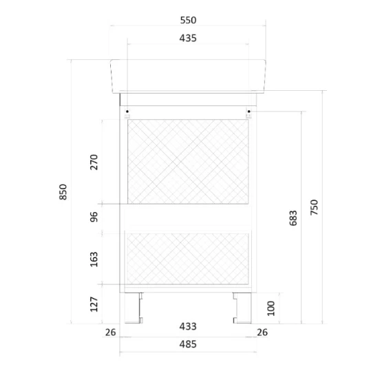 Тумба под раковину 1Marka Tera У76059 48,5 см, напольная, белый глянец
