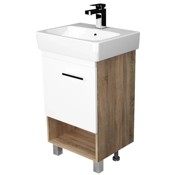 Тумба под раковину 1Marka Tera У76065 53,5 см, напольная, белый глянец/дуб сонома