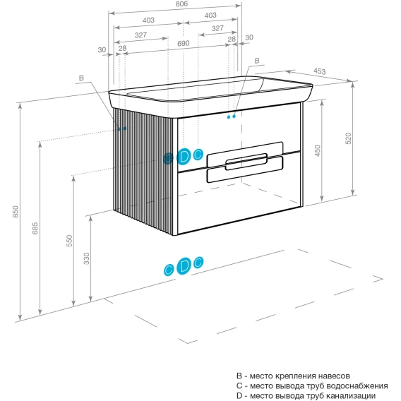 Тумба серый матовый 89,8 см Aqwella 5 Stars Cube CUB0109GR