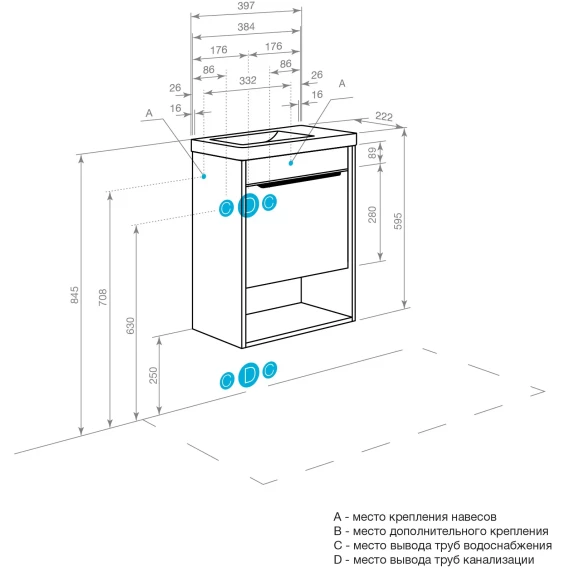 Тумба под раковину Акватон Хоуп 1A287101HP6C0 38,4 см, подвесная, орех