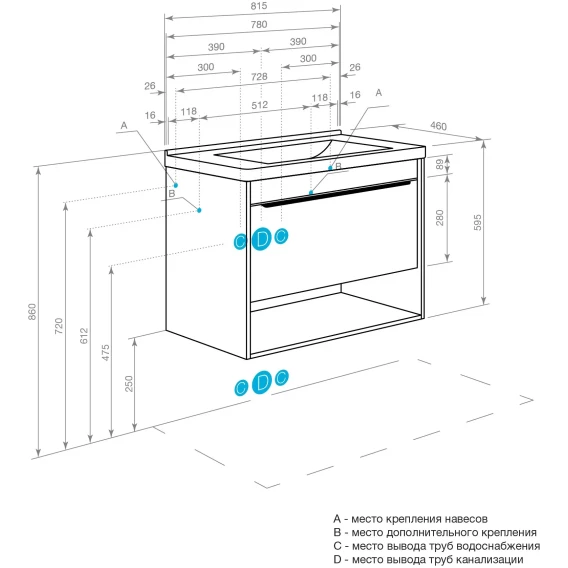 Тумба под раковину Акватон Хоуп 1A287301HP6C0 78 см, подвесная, орех