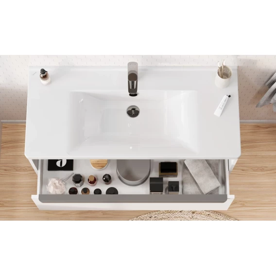 Тумба под раковину Акватон Хоуп 1A287401HP2B0 99,2 см, подвесная, белый глянец