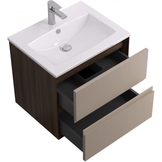 Тумба под раковину Акватон Люмин 1A293901A5OK0 58,8 см, подвесная, орех франклин/капучино матовый