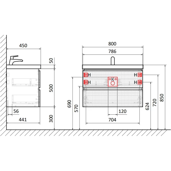Тумба под раковину AQUAme S1 AQM900180WH 78,6 см, подвесная, белый глянец