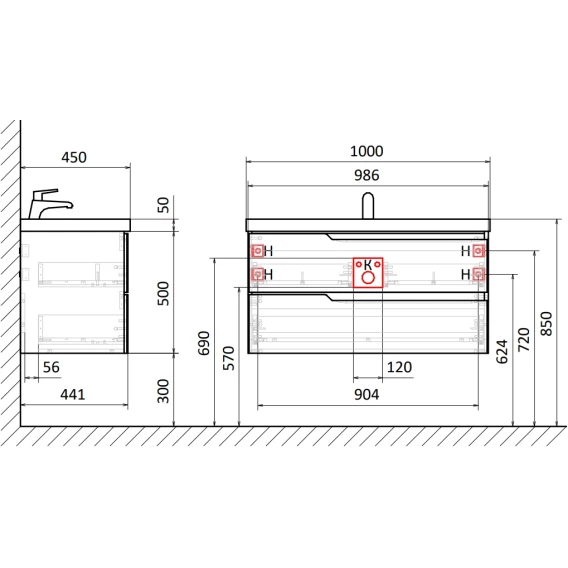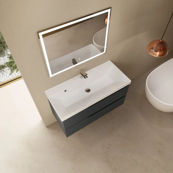 Тумба под раковину AQUAme S3 AQM900310GM 98,6 см, подвесная, антрацит матовый