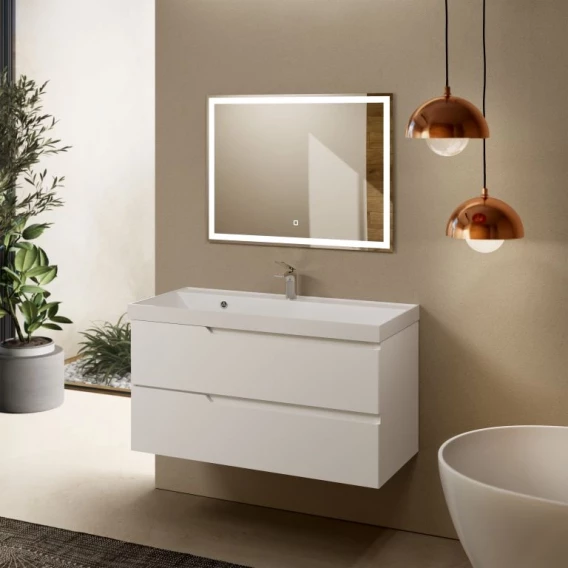 Тумба под раковину AQUAme S3 AQM900310WH 98,6 см, подвесная, белый глянец