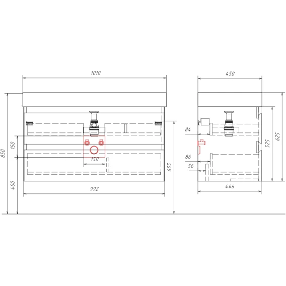 Тумба под раковину Aqwella 5 Stars Geometria GE01102GRM 99,2 см, подвесная, серый матовый