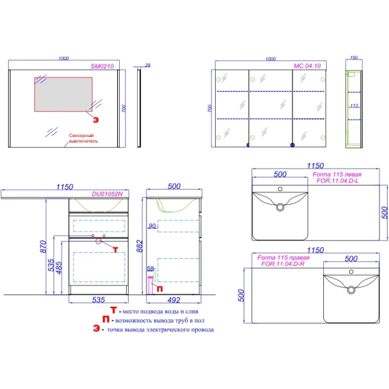 Тумба с раковиной белый глянец 140 см Style Line Даллас СС-00002273 + СС-00002215