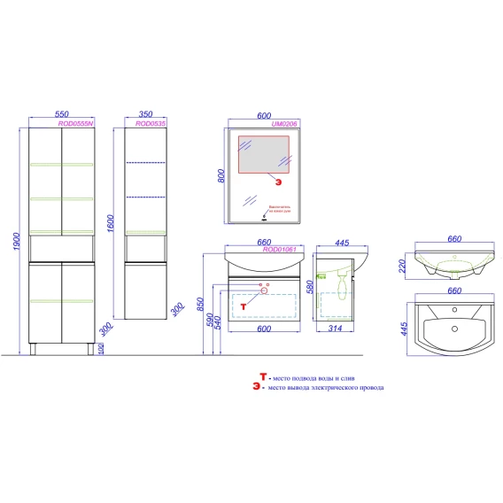 Тумба под раковину Aqwella Rodos ROD01061 60 см, подвесная, белый
