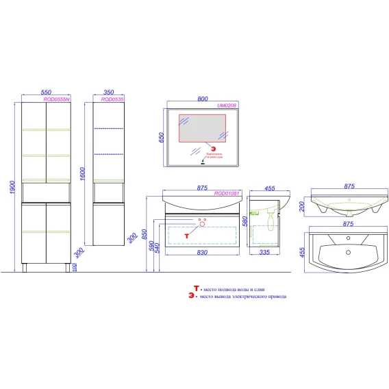 Тумба под раковину Aqwella Rodos ROD01081 83 см, подвесная, белый