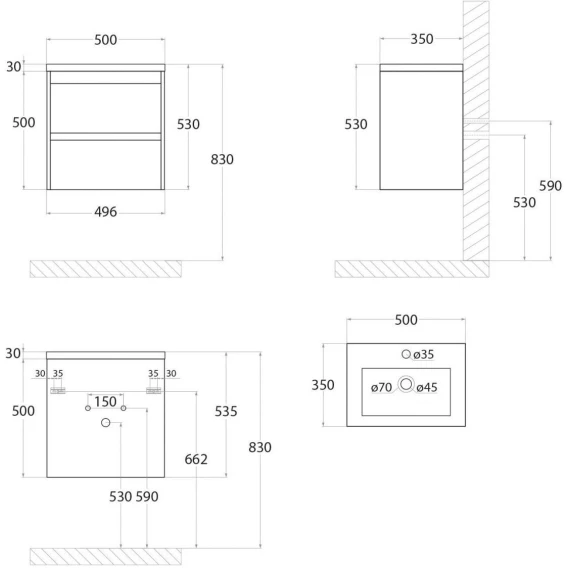 Тумба под раковину Art&Max Family FAMILY-500-2C-SO-PE 49,6 см, подвесная, бетон экзотик