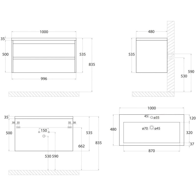 Тумба под раковину Sancos Marmi 1.0 MR1.0100REG 99,5 см R, подвесная, дуб галифакс