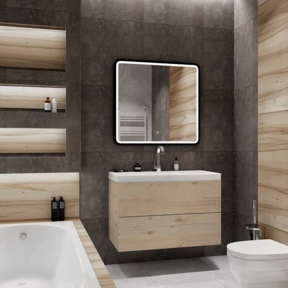 Тумба с раковиной Orange Line Li-70TuLMDF+B05-520W 70,2 см, подвесная, со столешницей, латте матовый