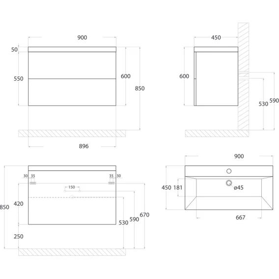 Глубина 45 см